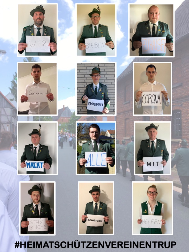 Jeder Schützenverein wurde einmal gegründet, um die Bevölkerung zu schützen. Damals standen unsere Vorfahren mit Waffen an den Dorfgrenzen, um es gegen einfallende Plünderer zu schützen. Gott sei Dank greifen unsere Mitglieder in der heutigen Zeit nur noch zum Gewehr, um sich in einem sportlichen Wettkampf zu messen. So wie sich das Schützenwesen verändert hat, haben sich auch die Plünderer geändert. Aktuell wird die gesamte Bevölkerung durch das Coronavirus bedroht. Wir können uns nicht mehr für euch vor die Dorfgrenze stellen und gegen unsere Feinde kämpfen, aber jeder einzelne kann in dieser Zeit Leben retten, indem sie oder er zu Hause bleibt. Lasst uns zusammen unserem Gesundheitssystem die Chance geben, jeden einzelnen Menschen so zu behandeln, wie dieser es verdient hat.