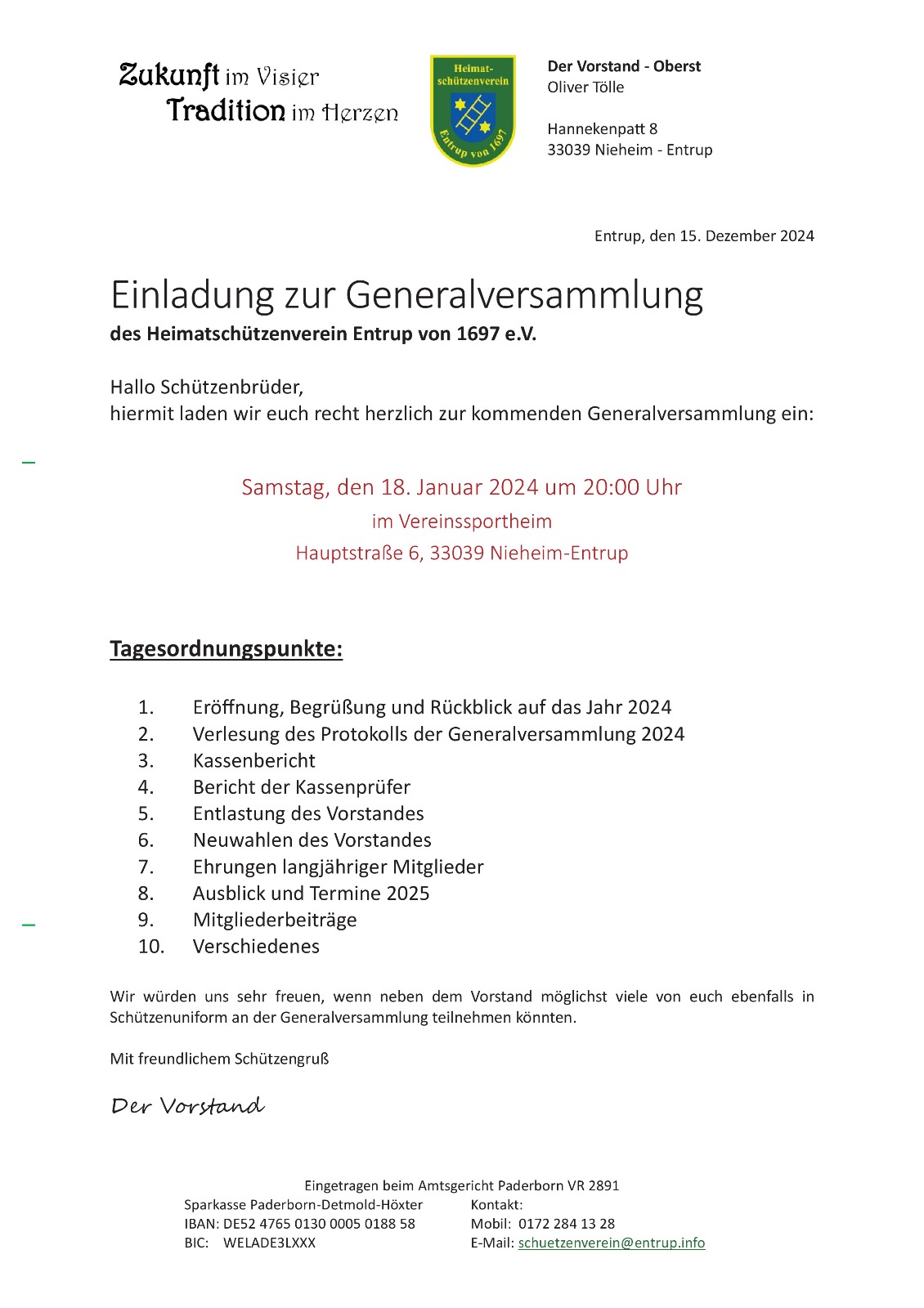 Schützenverein Generalversammlung 2025